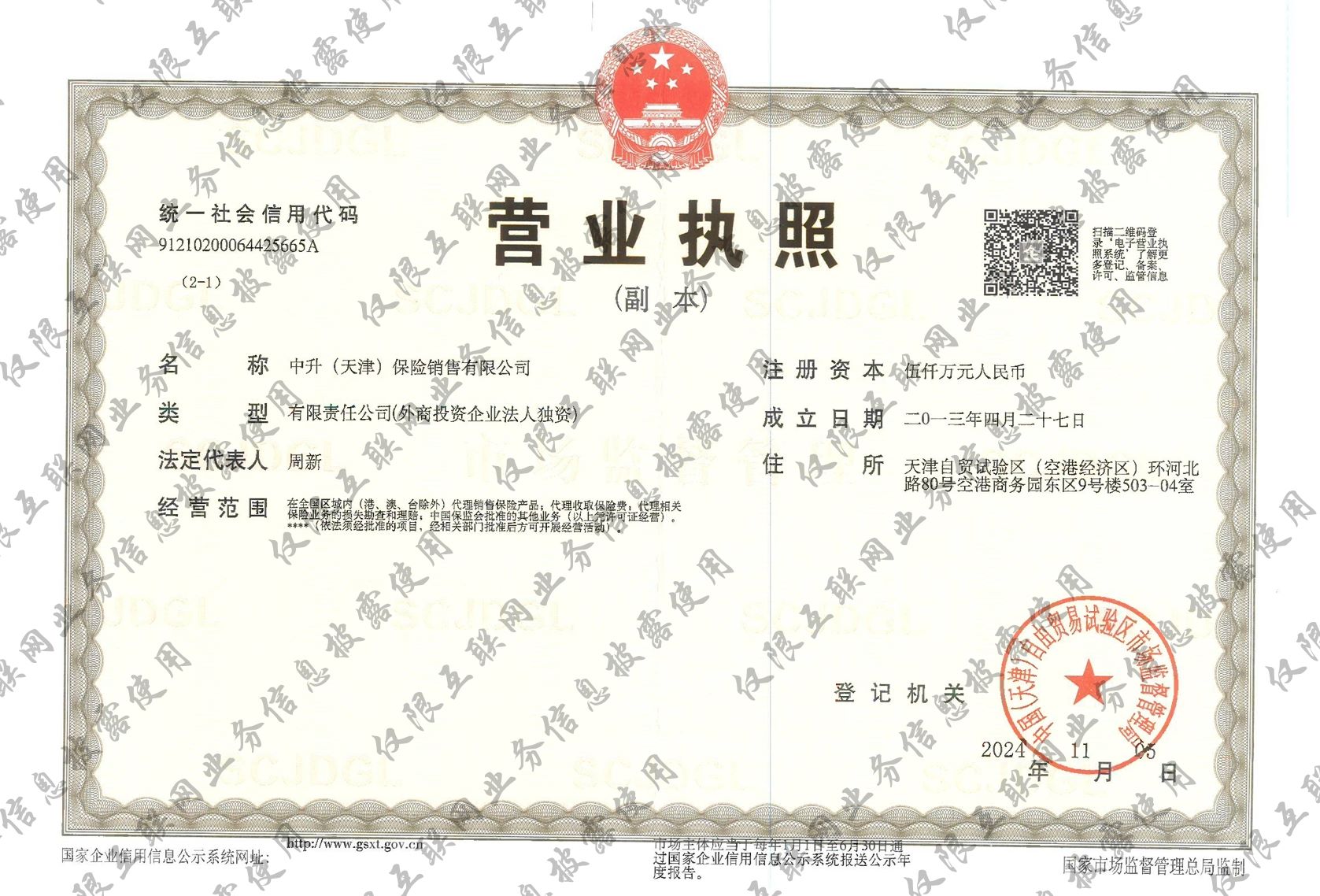 经营资质: 营业执照 保险中介许可证